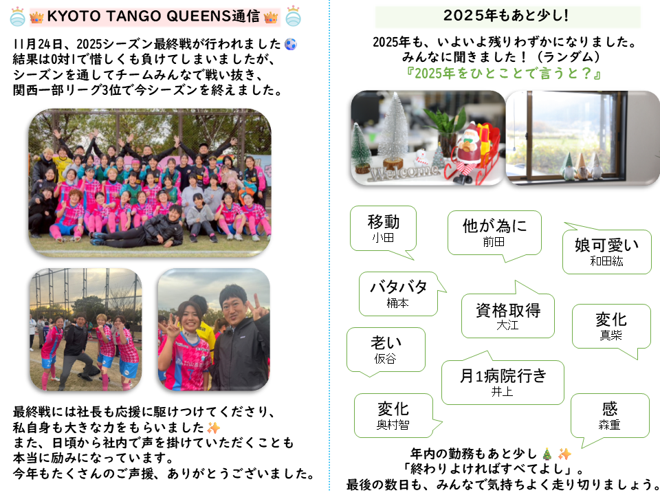2025年も残りわずか。最後まで、気持ちよく走り切りましょう🌱
