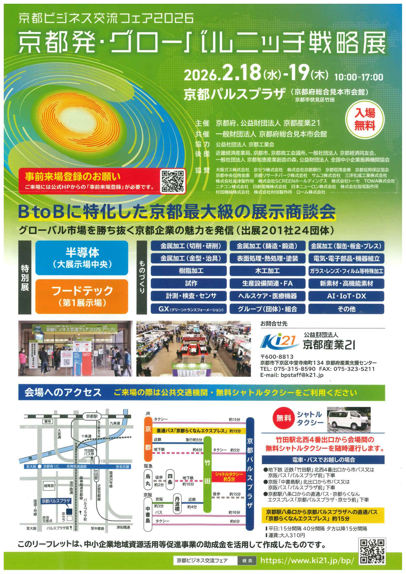 シオノ鋳工は、京都ビジネス交流フェア2026― 京都発・グローバルニッチ戦略展 ―に出展いたします。